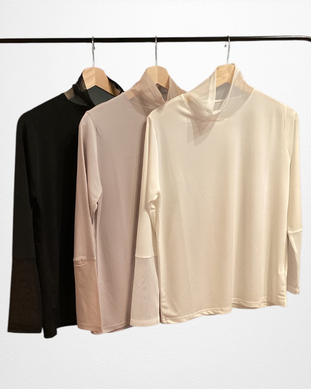 レイヤードアイテムとして着回しのきくデザインに、さりげなくシアー感をプラスして今年らしい素材感にしています。