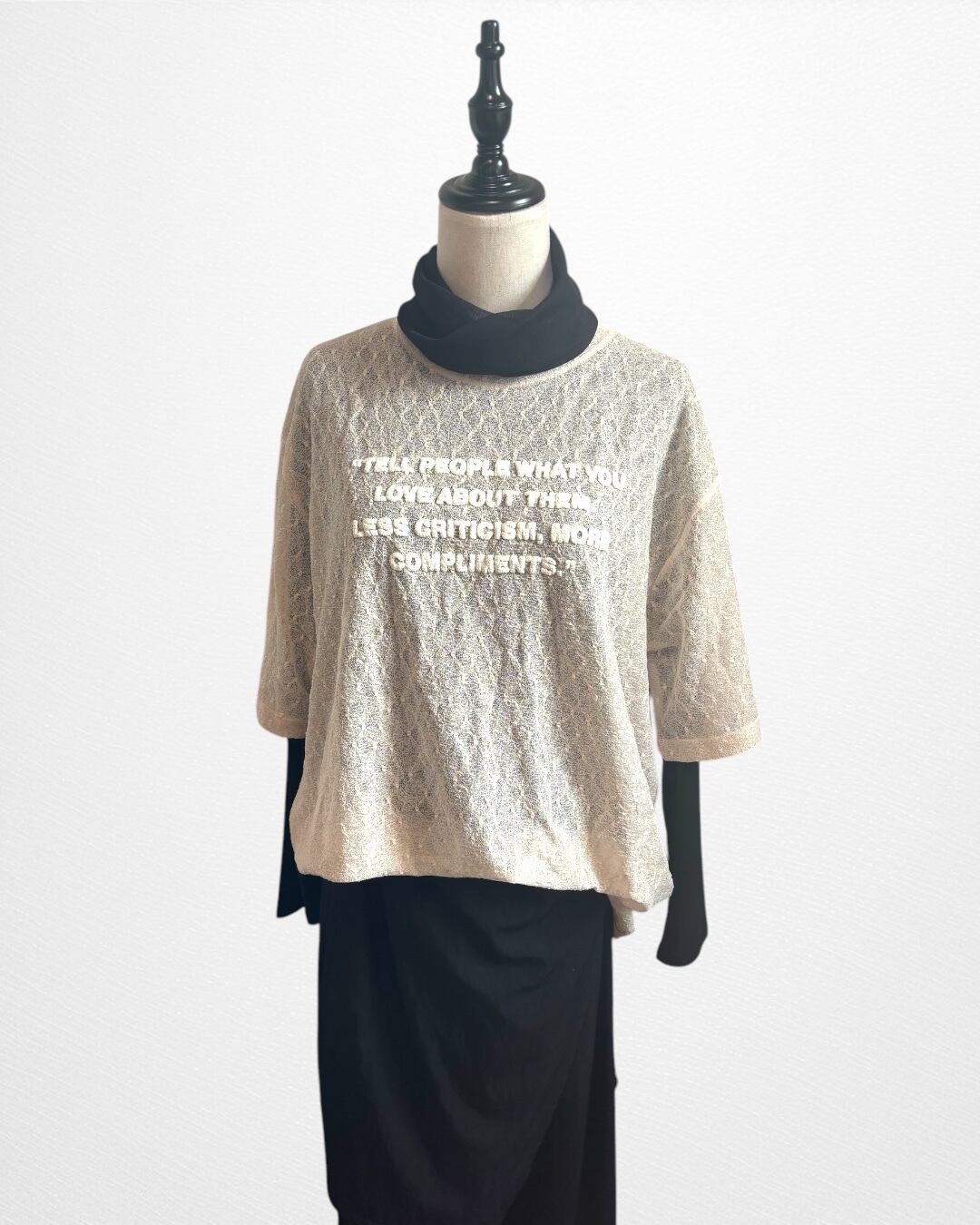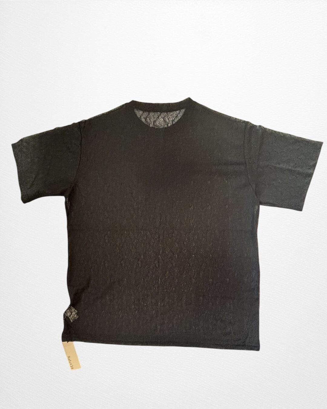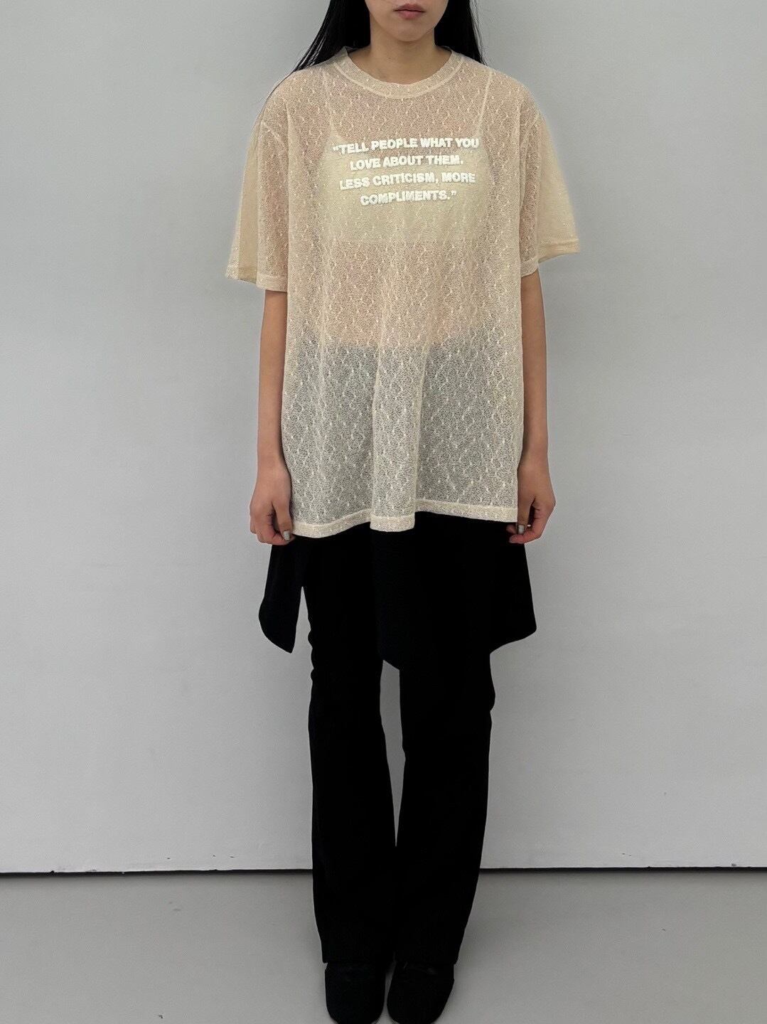 透け感のあるオーバーサイズレースモチーフTシャツ。
