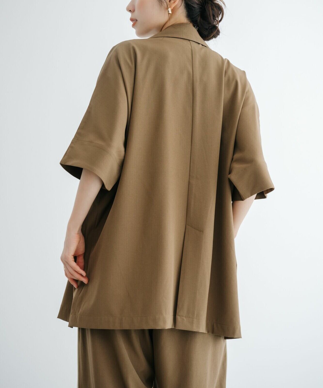 軽くさらっとした肌触りが着心地の良いドライ質感の半そでテーラードジャケット。