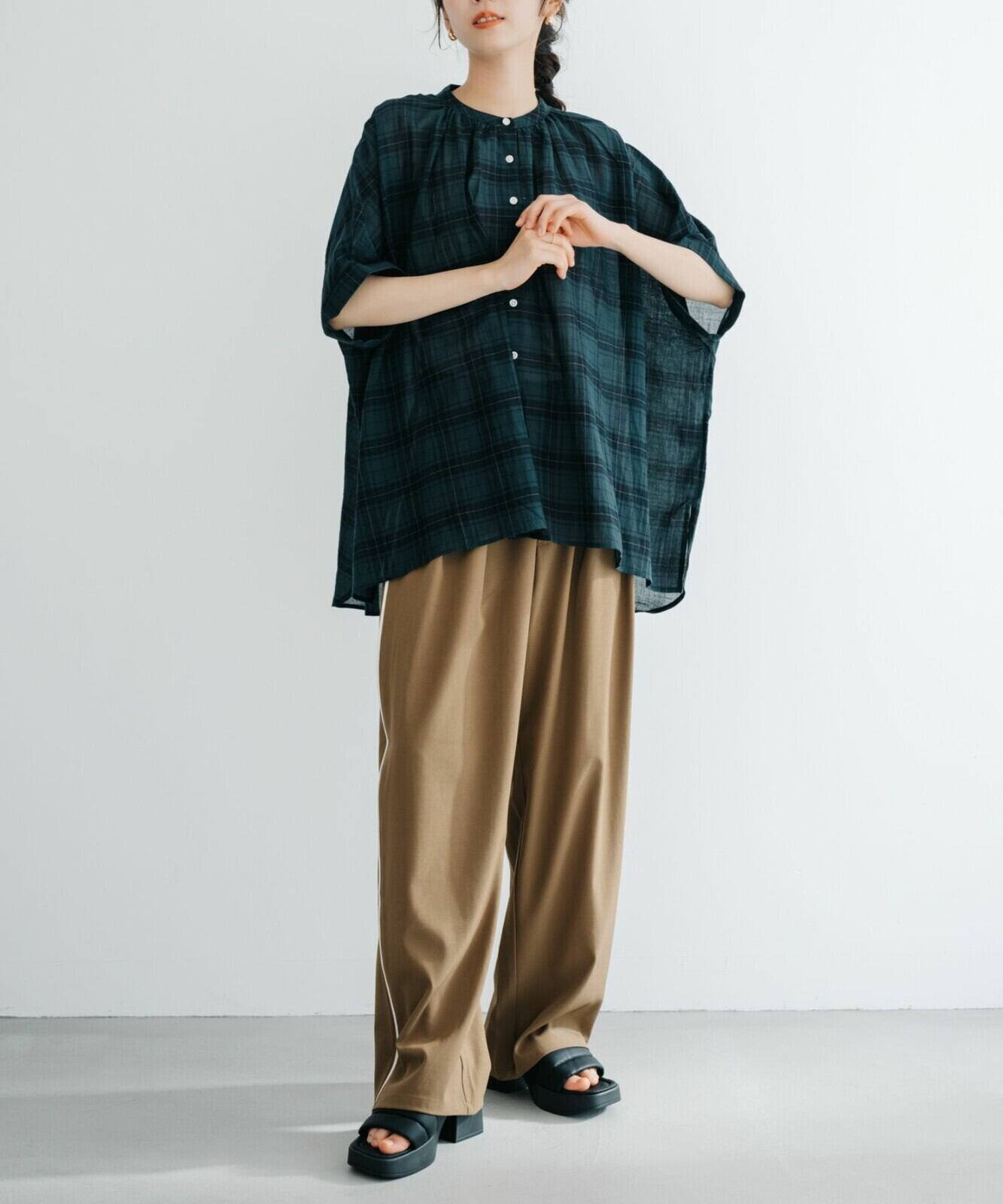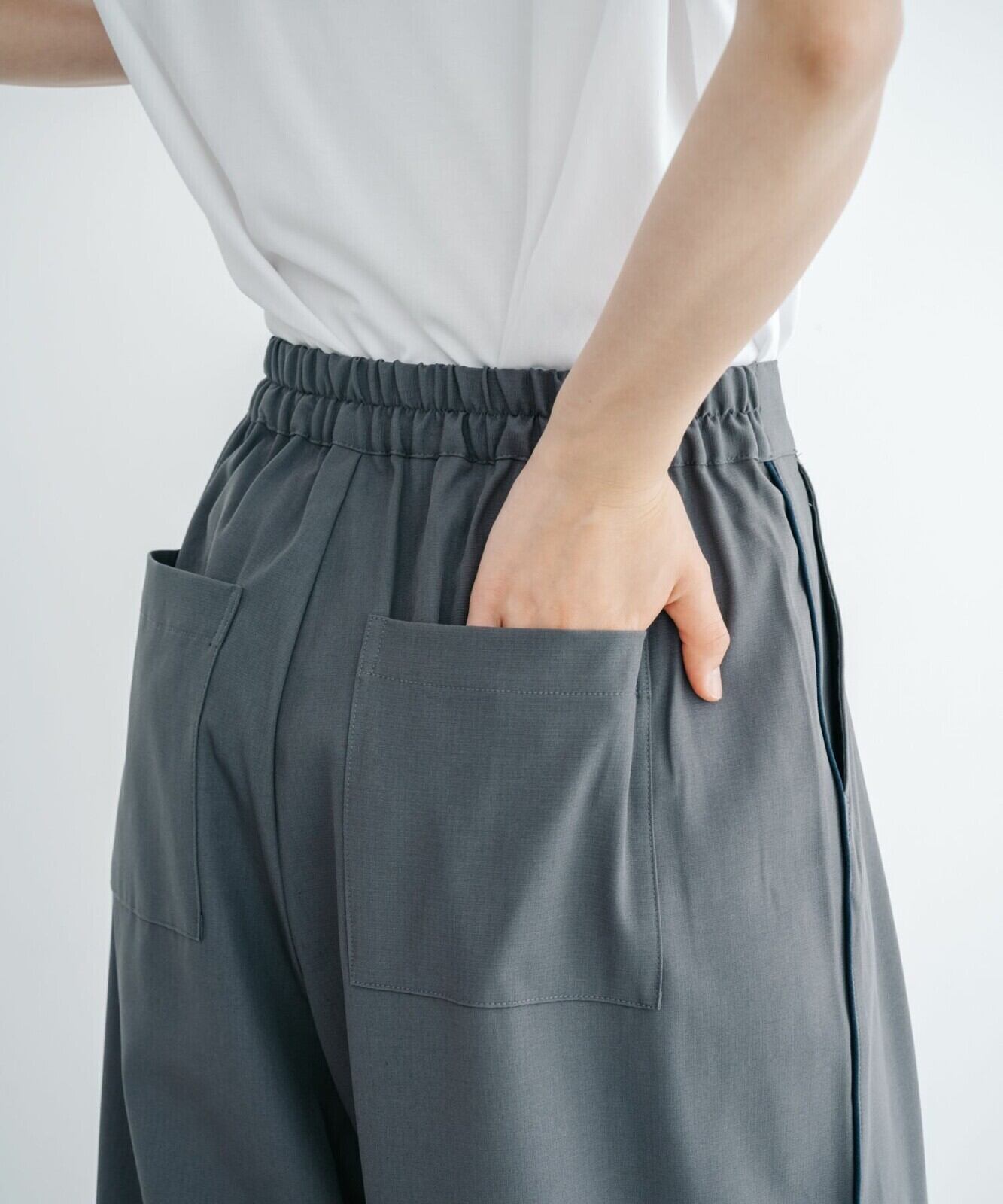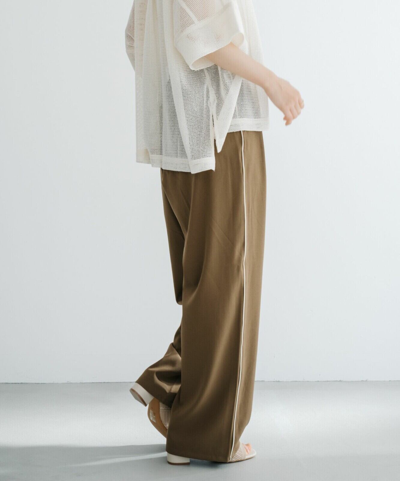 軽くさらっとした肌触りが着心地の良いドライ質感のパイピングパンツ。