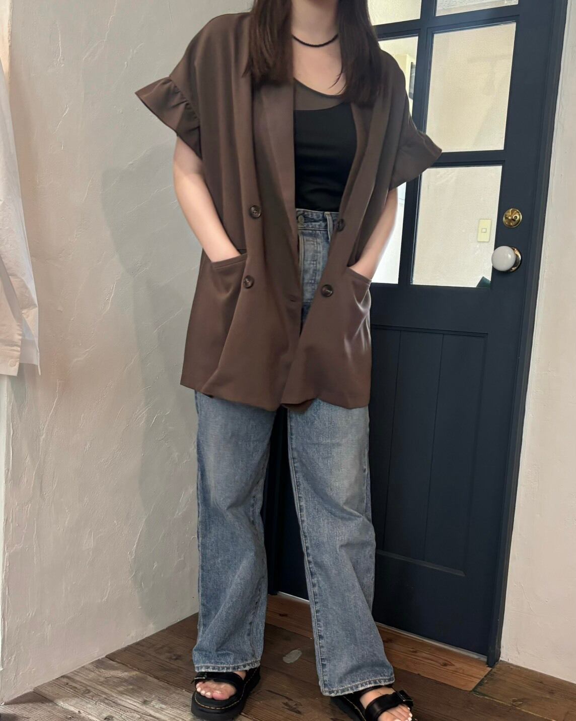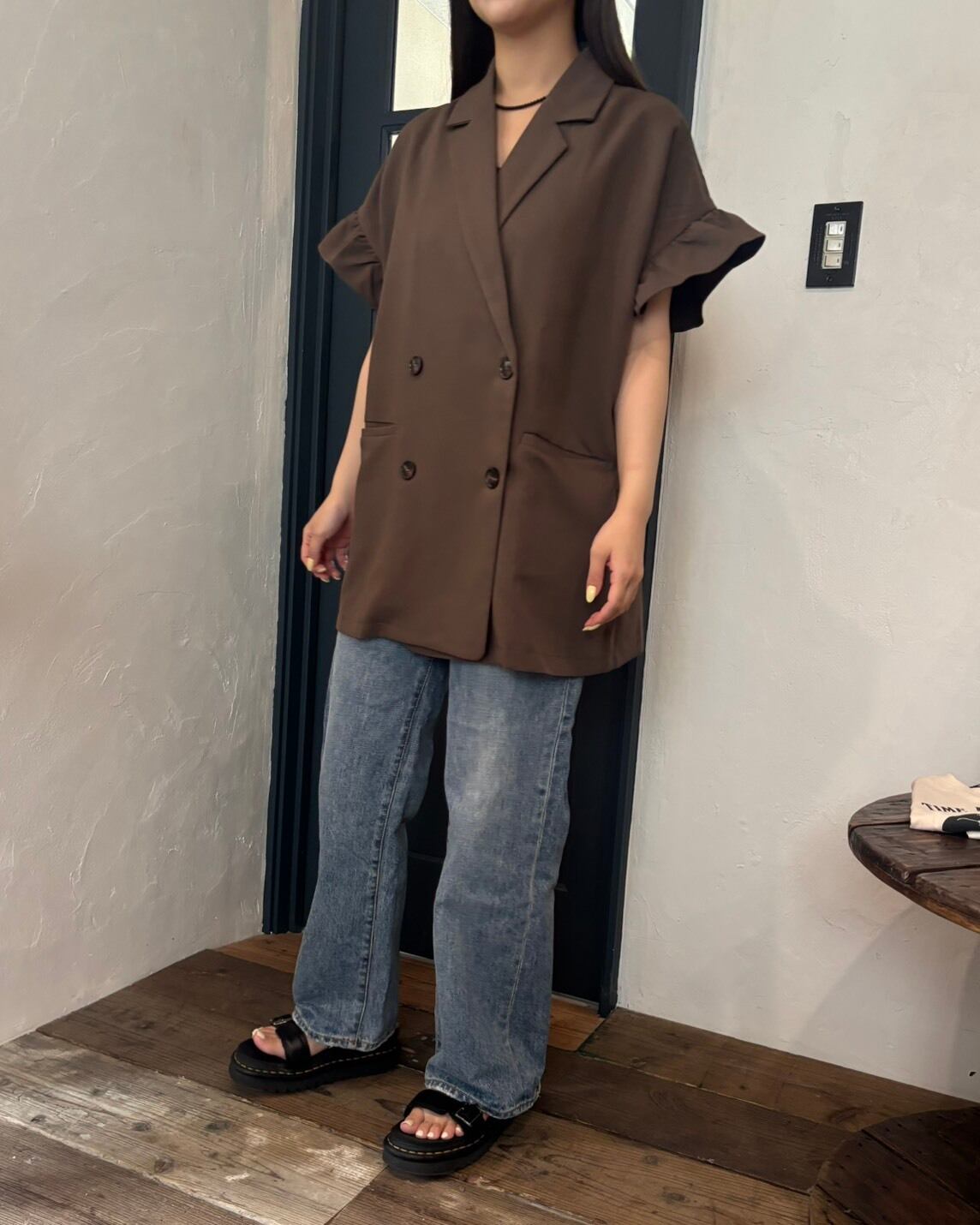 袖にフリルを施し、マニッシュに甘さをプラスしたジャケットベスト。