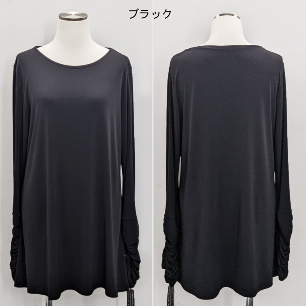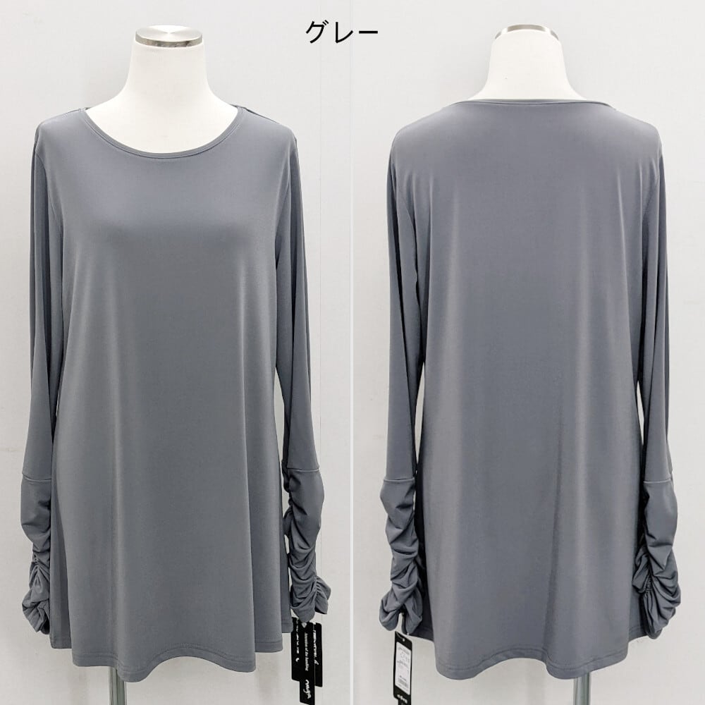 ギャザー袖 Aライン ロングカットソー