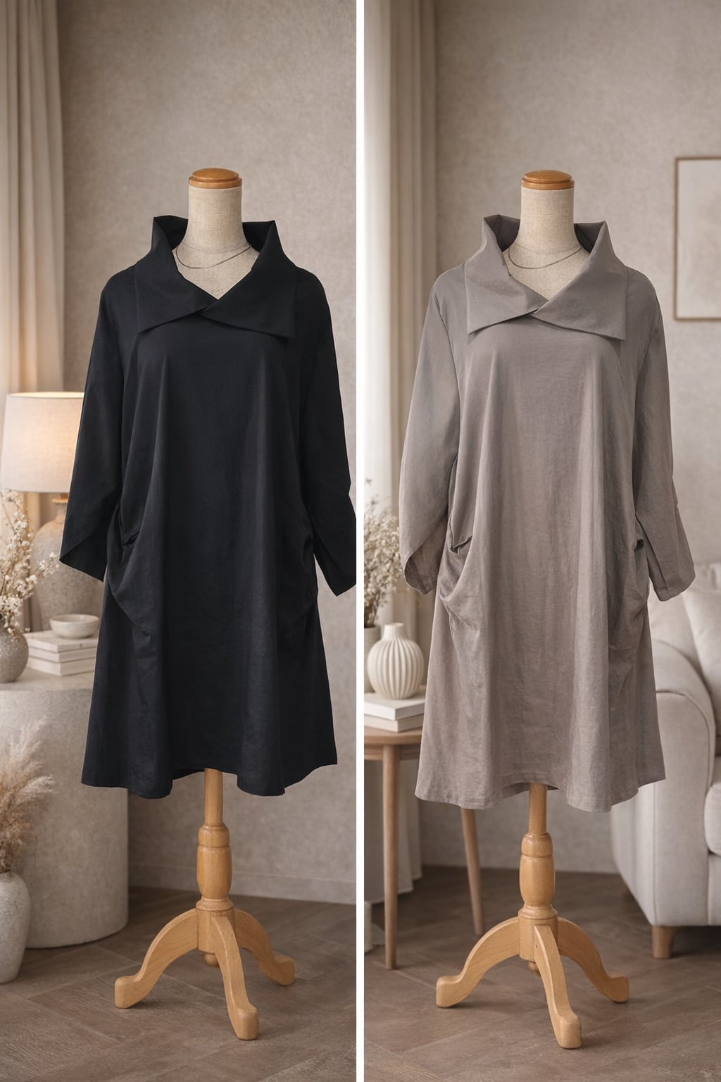 首元を美しく見せる立体ドレープカラーが印象的なチュニックです。