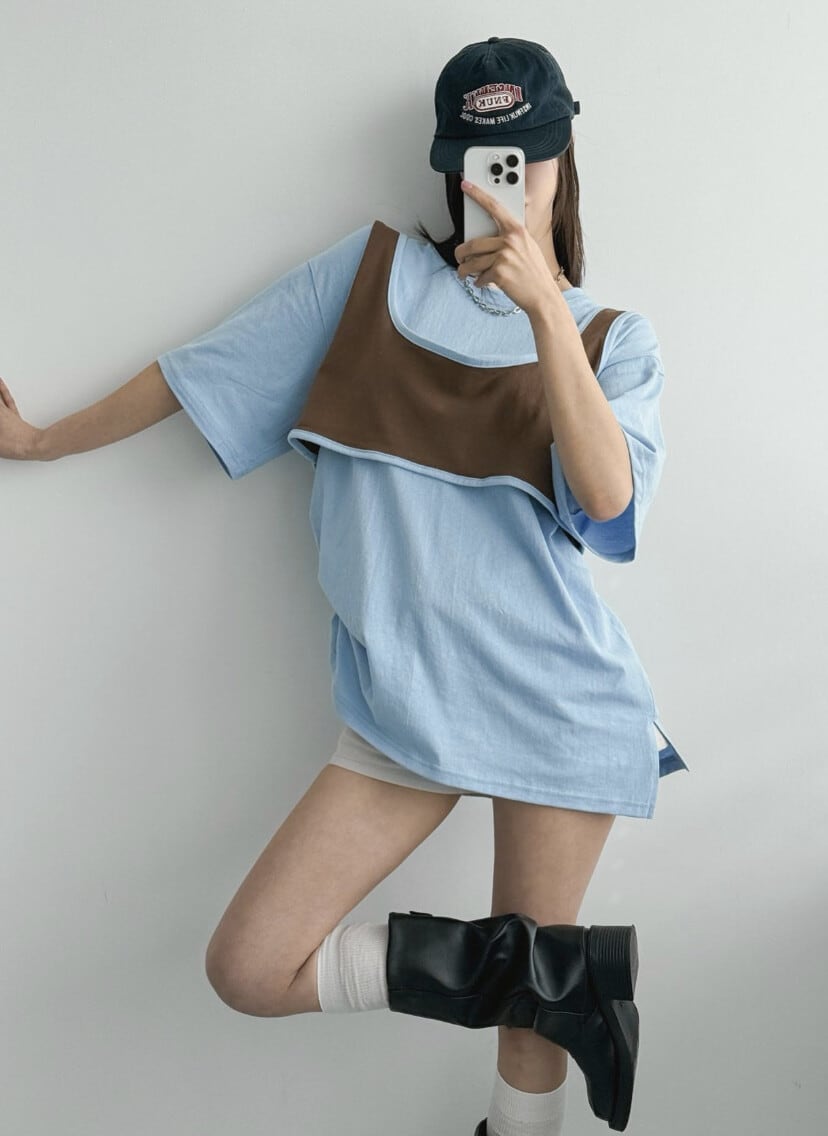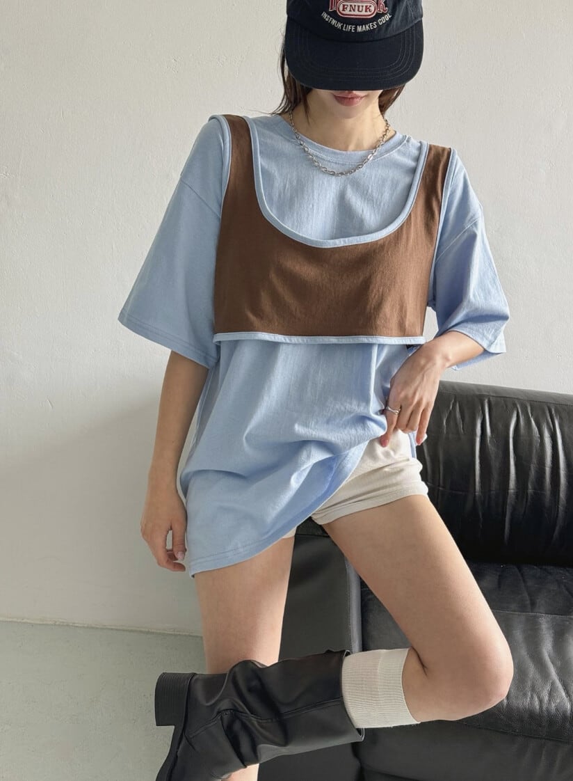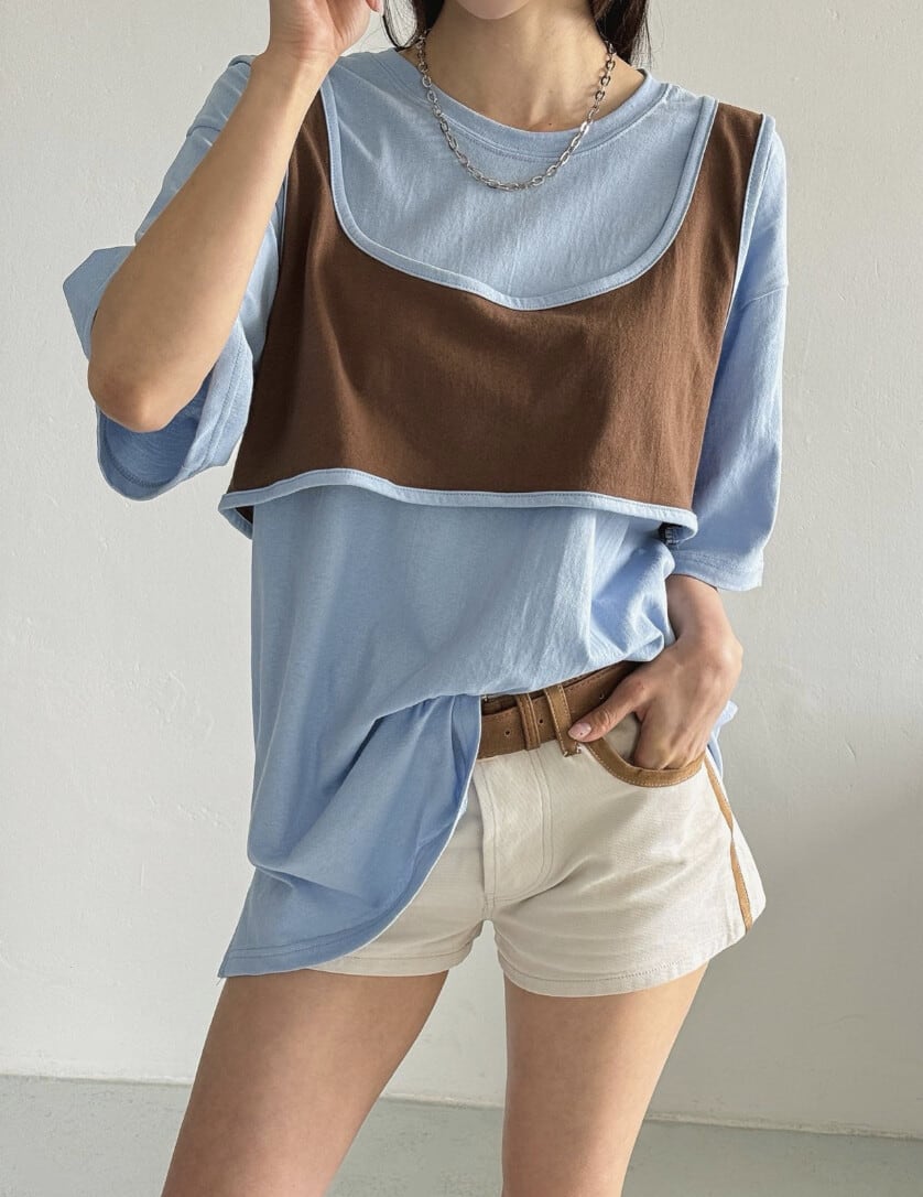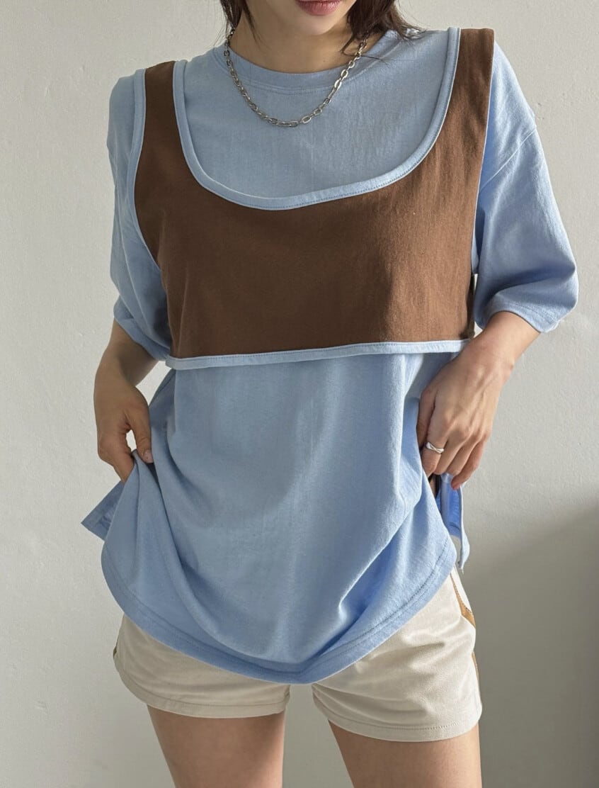おしゃれなレイヤードデザインのTシャツ。
