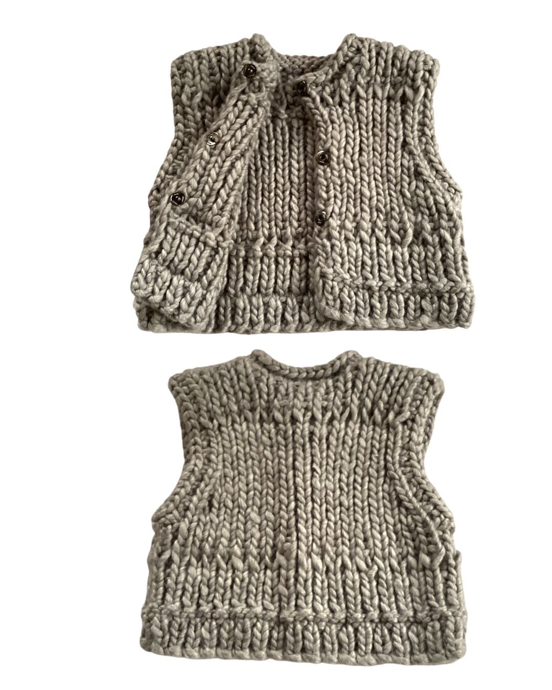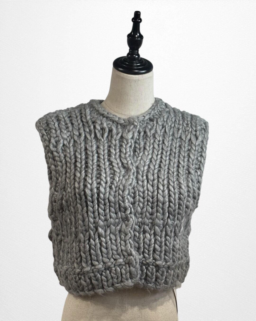 手編みならではのざっくりとした風合いが素敵なローゲージニットベスト。
